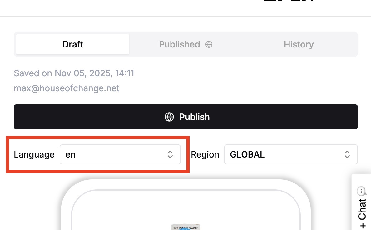 If you are on a Page (Product or Media), you can see language information in the “Content” tab…