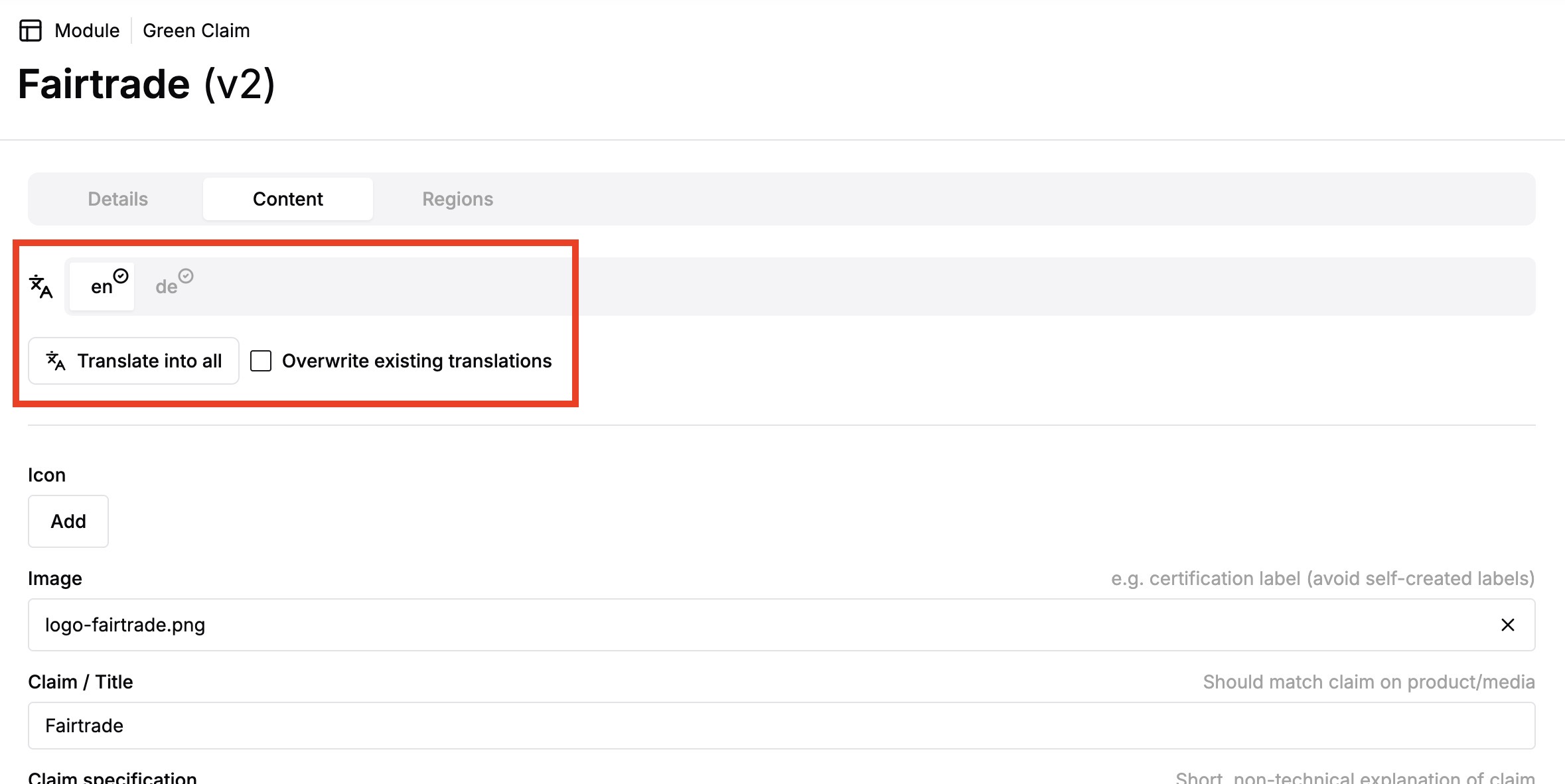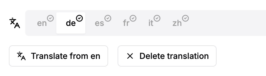 You can also delete a target language by pressing “Delete translation”. This clears all fields of the target language and means the Module is unavailable in that language.